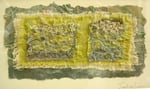 Materials include: stonework collage drawing plus hand dyed fabrics and threads together with hand and machine stitching