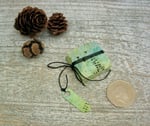 Tiny folding artist book with hard covers and linen thread tie fastening.