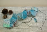 Tiny folding artist book with hard covers and linen thread tie fastening.