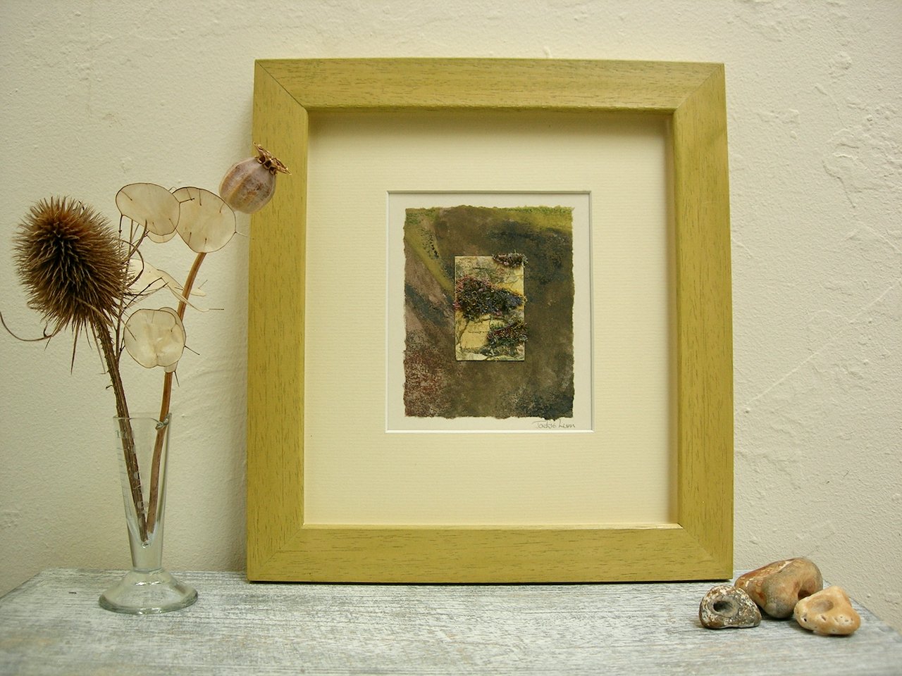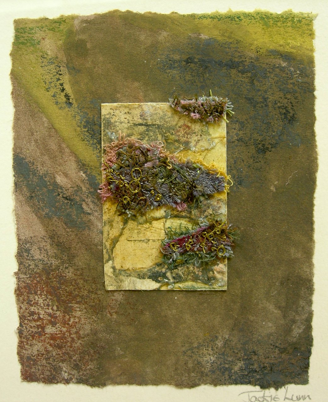 Materials include: stonework collage drawings plus hand dyed fabrics and threads together with hand & machine stitching.